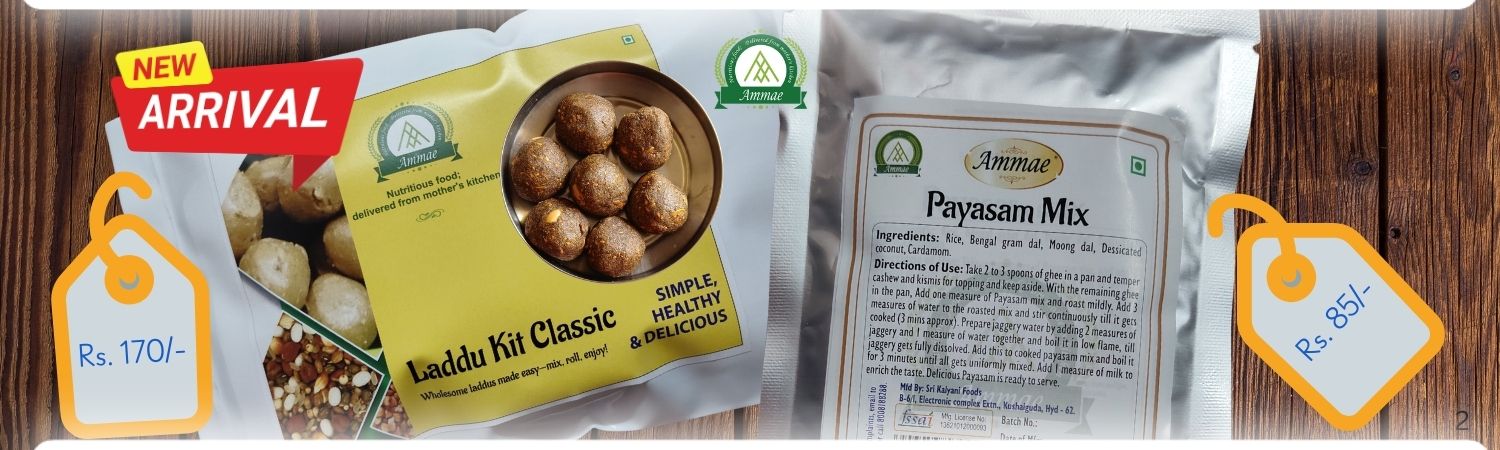 Mother, prepares food with lots of love and compassion. Food prepared by her is more divine in nature, hence the brand Ammae. All our products are from cereals, pulses, millet and legumes. Each product is fine-tuned to ensure reasonable nutrients are available in our products. Our product range suits for the different age groups. All our products are free from Preservatives or Chemicals. Our product range consists of porridge mix, malted drink mix, Health drink mix, Baby wean mixes, Sprouted Ragi powder, Ready to cook millet breakfast, multigrain flours, gluten free flours, instant pepper rasam, vathakuzhambu mix. Apart from these we do have maapillai samba rice, millets and RNR diabetic rice.